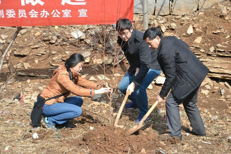 最是一年春光好,改革发展处处新。3月9日,省编办副主任任丰金带领机关30余名党员干部,赴对口帮扶村巩义市小关镇南岭新村,和村里的党员群众、妇女同胞共同开展“拥抱春天·携手助贫”主题活动,通过义务植树、清洁家园、登山比赛,庆祝第108个“三八”国际妇女节,焕发妇女半边天健康向上的精神风貌,激发广大干群积极投身脱贫攻坚和乡村振兴伟大事业的斗志热情。巩义市编办和小关镇的部分同志一起参加活动。